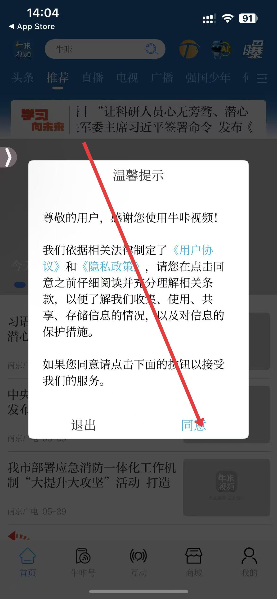 1、第一次打開軟件,頁面會跳出服務協議等,需要認真閱讀軟件給出的條款后,點擊同意并繼續下一步。