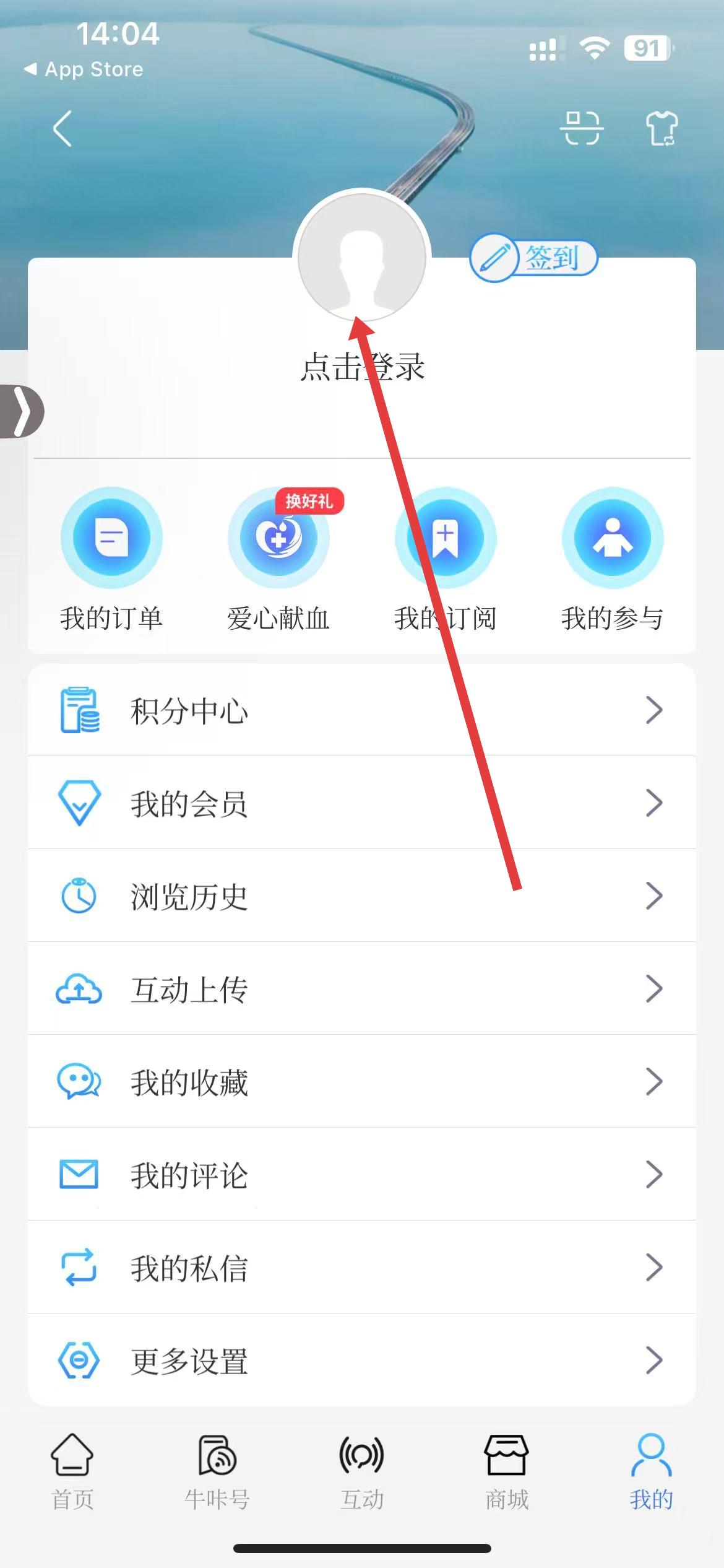 3、跳轉到我的界面之后,向上查看,發現狀態為未登錄,點擊進行登錄,跳轉到登錄界面就可以了。