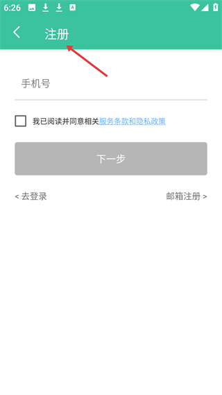 2、注冊頁,可填手機號注冊,需同意服務條款和隱私政策,也可郵箱注冊,流程分步驟推進。