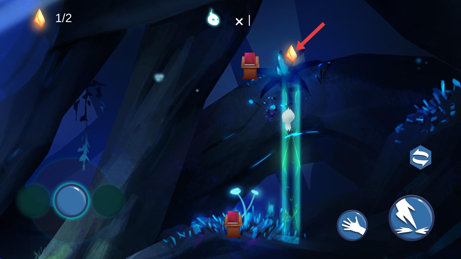3、場景里有發光的菱形晶體,操控角色靠近并獲取它們,左上角會顯示收集進度,努力收集全部晶體推進游戲。
