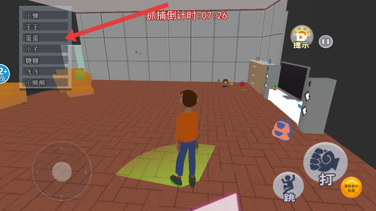 4、游戲中還有小懶、王王、蛋蛋等角色相關顯示,抓住這些小朋友體驗捉迷藏過程中的樂趣,感受緊張刺激的追逐與躲避。