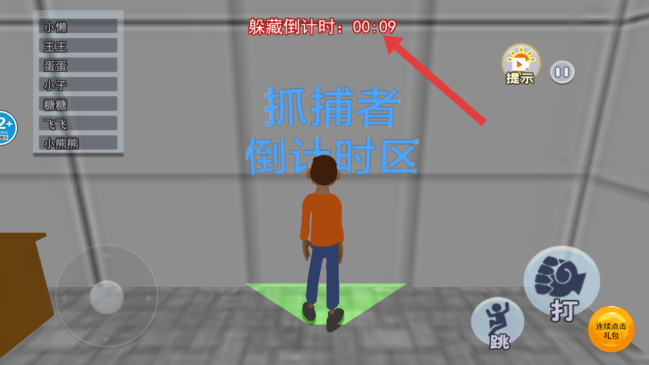 2、以相關模式為例,游戲開始有躲藏倒計時,小孩在需規定時間內找好躲藏位置倒計時結束大人就開始找。