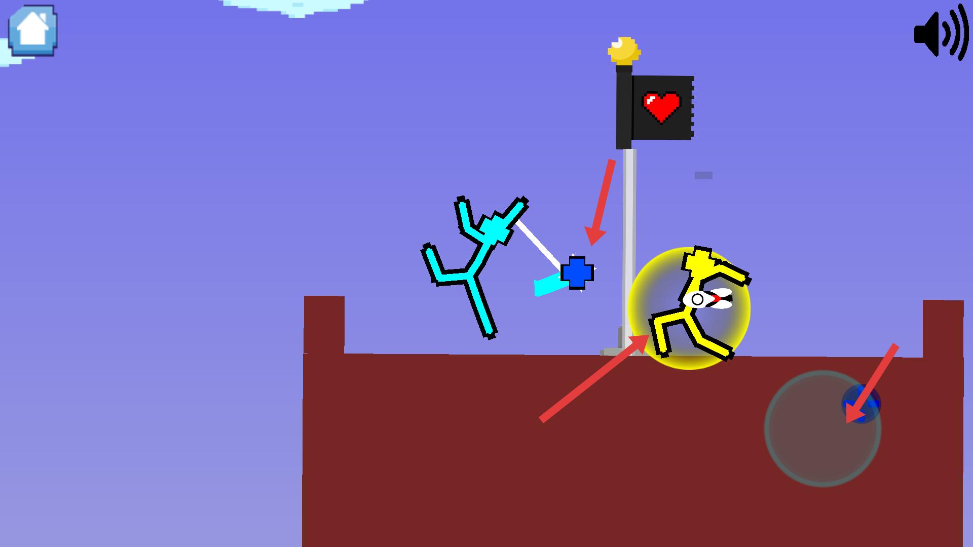 3、戰斗時操控藍色火柴人,與火柴人敵人交戰,利用武器攻擊敵人,同時注意躲避敵人攻擊,爭奪場地優勢。