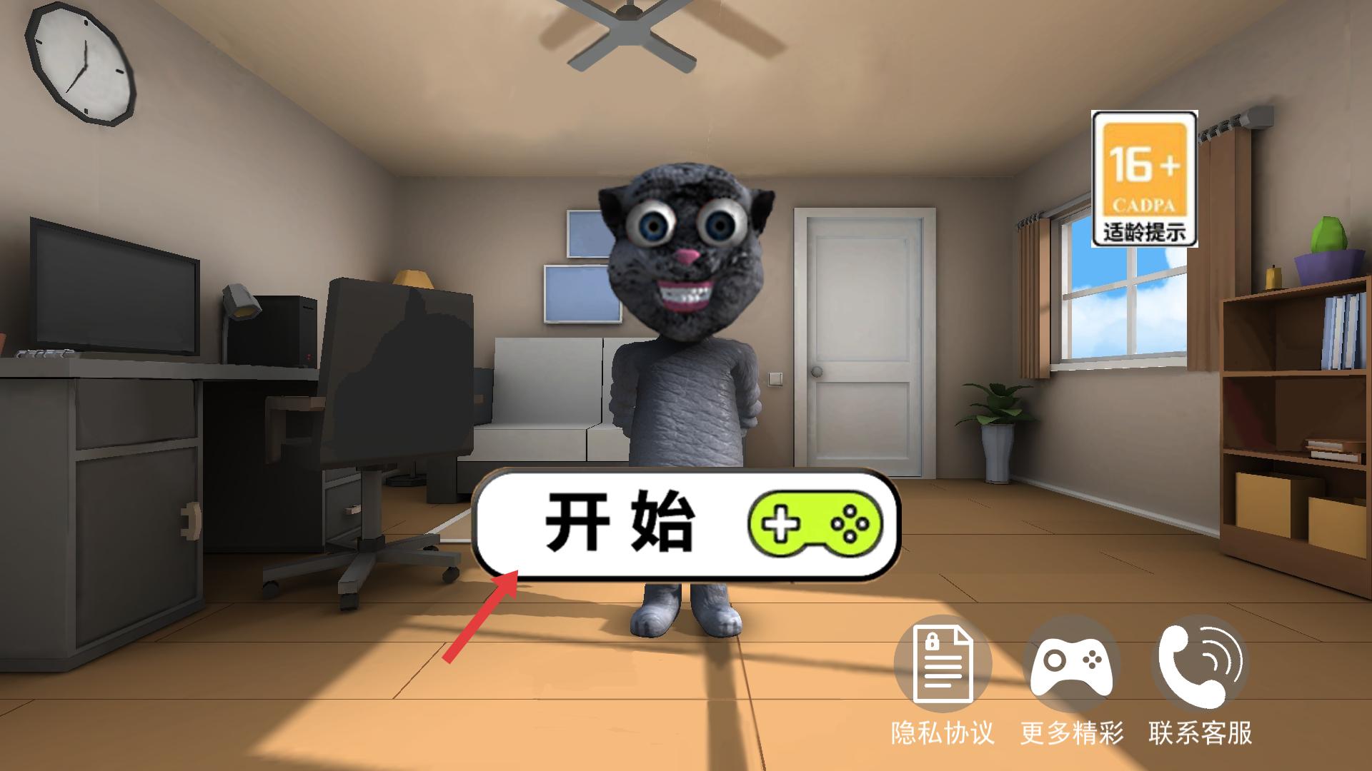 1、進入游戲界面,點擊【開始】按鈕,開啟互動之旅,可體驗喂養、裝扮等玩法,通過完成任務提升貓咪狀態。