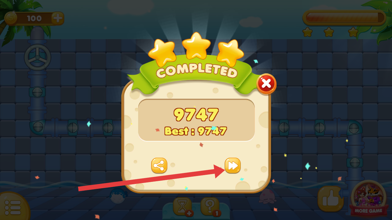 4、成功連通所有水管后,會顯示COMPLETED等通關提示,可點擊箭頭按鈕進入下一關,繼續挑戰更復雜的水管連接。