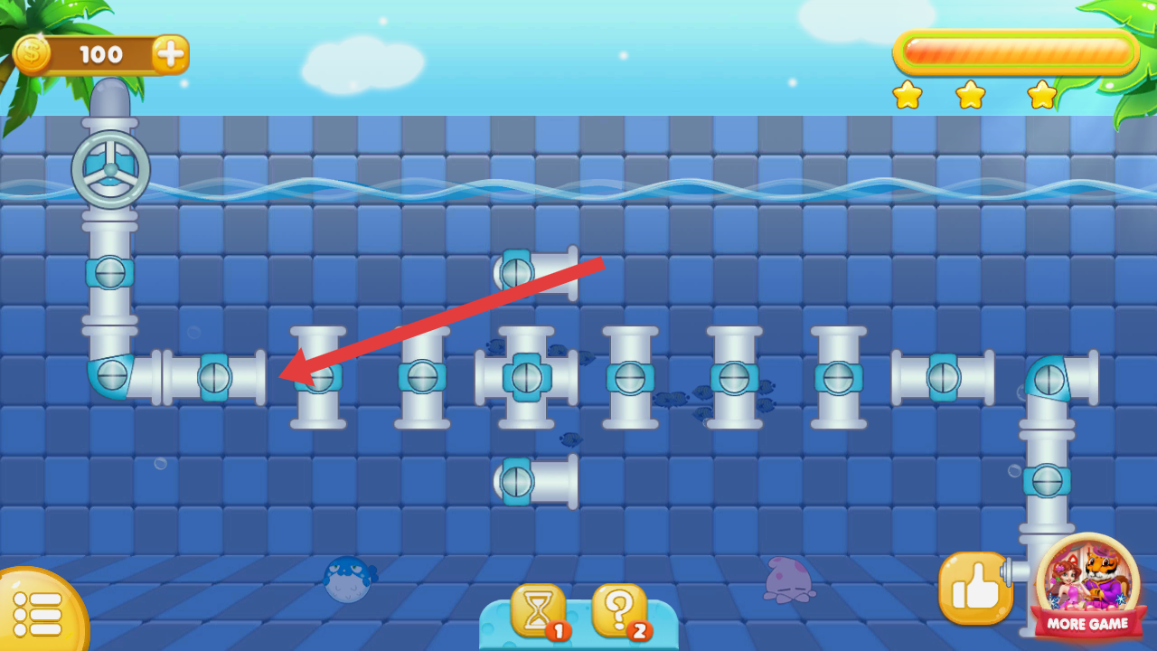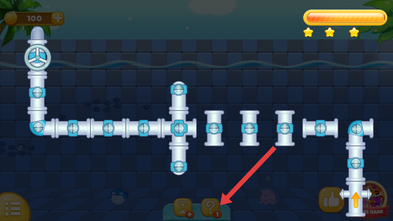 3、遇到連接困難時,點擊下方問號圖標,可獲取水管連接的提示,借助提示更順利地完成拼接。