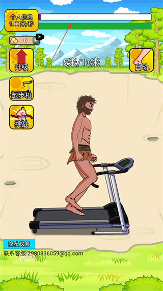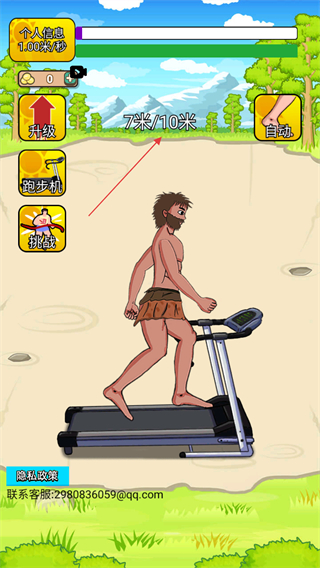 3、在游戲中通過點擊或長按屏幕等操作,手動控制角色在跑步機上跑步使角色前進,努力達到關卡要求的跑步距離。