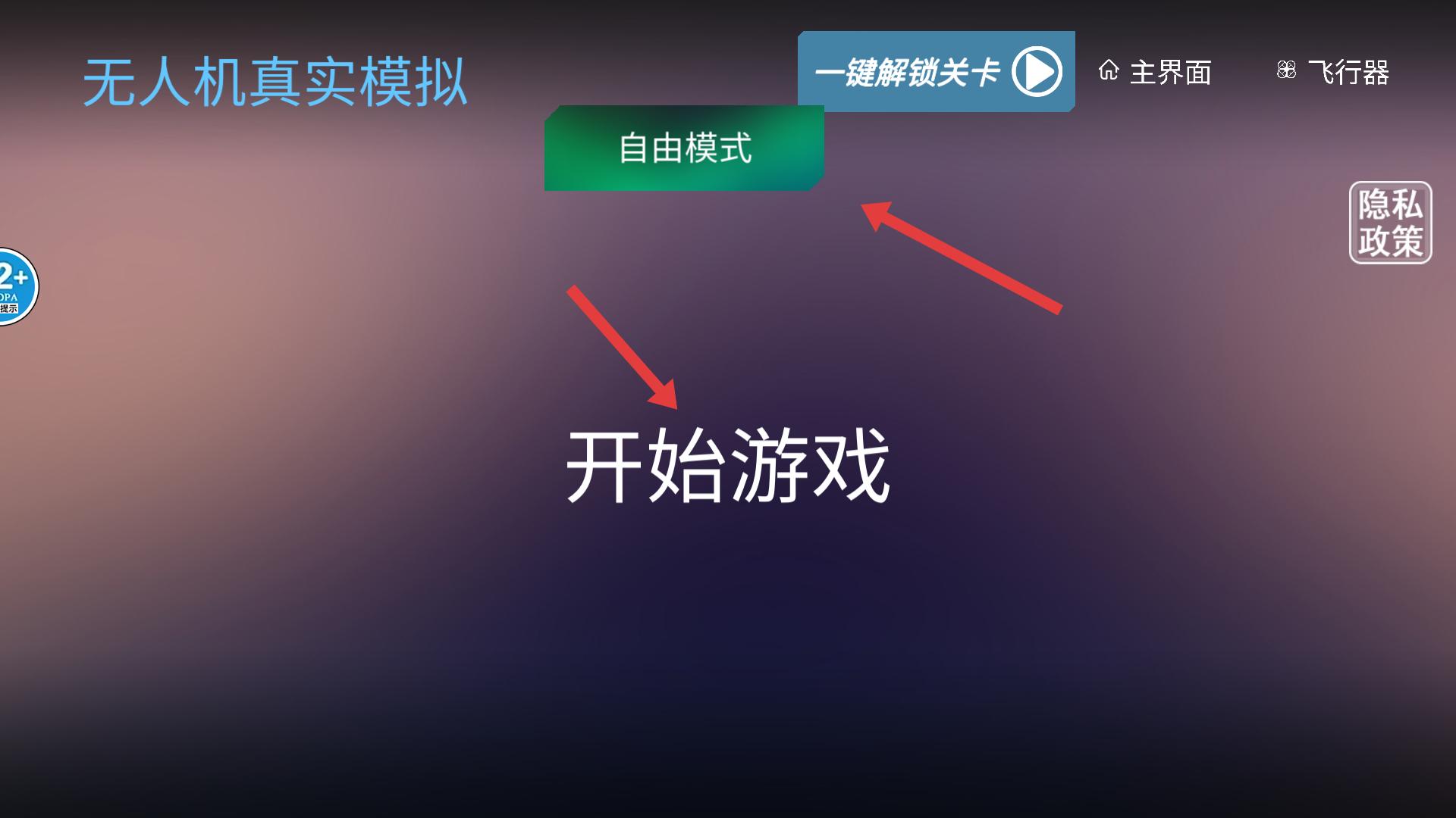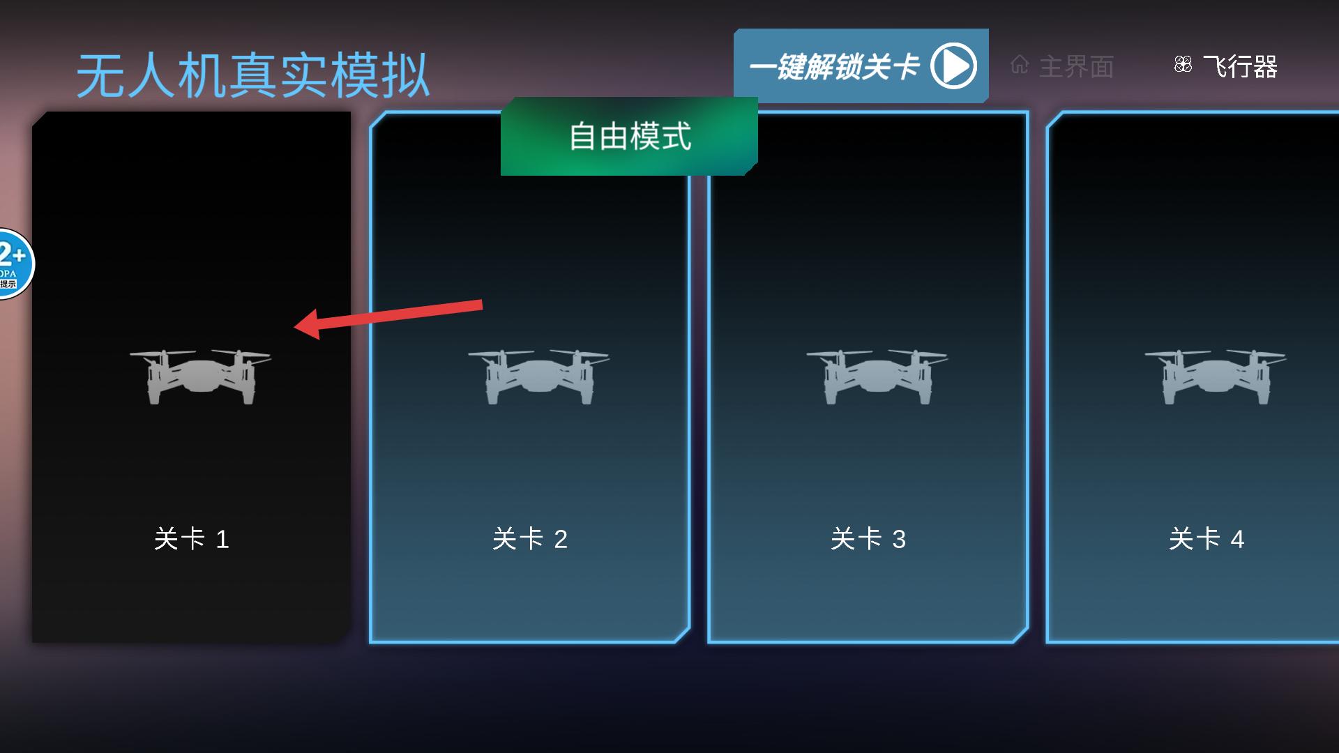 2、在模式選擇界面,選擇自由模式后,進入關卡選擇界面,挑選想要挑戰的關卡,開啟無人機模擬飛行。
