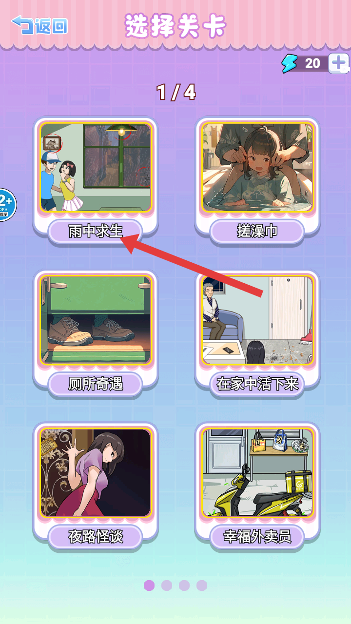 2、接著選擇關卡界面,選擇像雨中求生這類關卡,進入具體游戲場景開始找出詭異的地方。