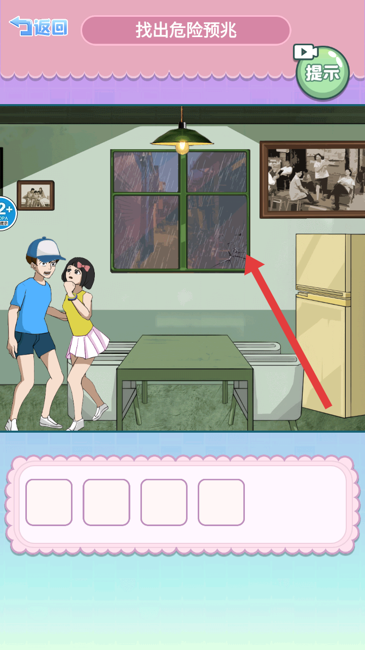 3、進入關卡后,仔細觀察場景,找出如裂紋窗戶等危險預兆,完成找危險預兆的任務。