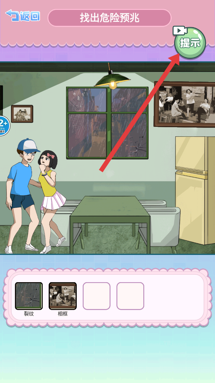 4、要是難以找到危險預兆,可點擊提示按鈕,獲取線索,助力完成任務獲得通關獎勵。