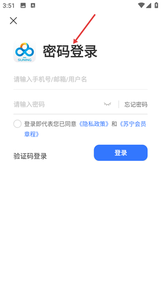 2、登錄界面提供密碼登錄,支持多賬號類型密碼,需勾選相關協議,也可切換為驗證碼登錄方式。
