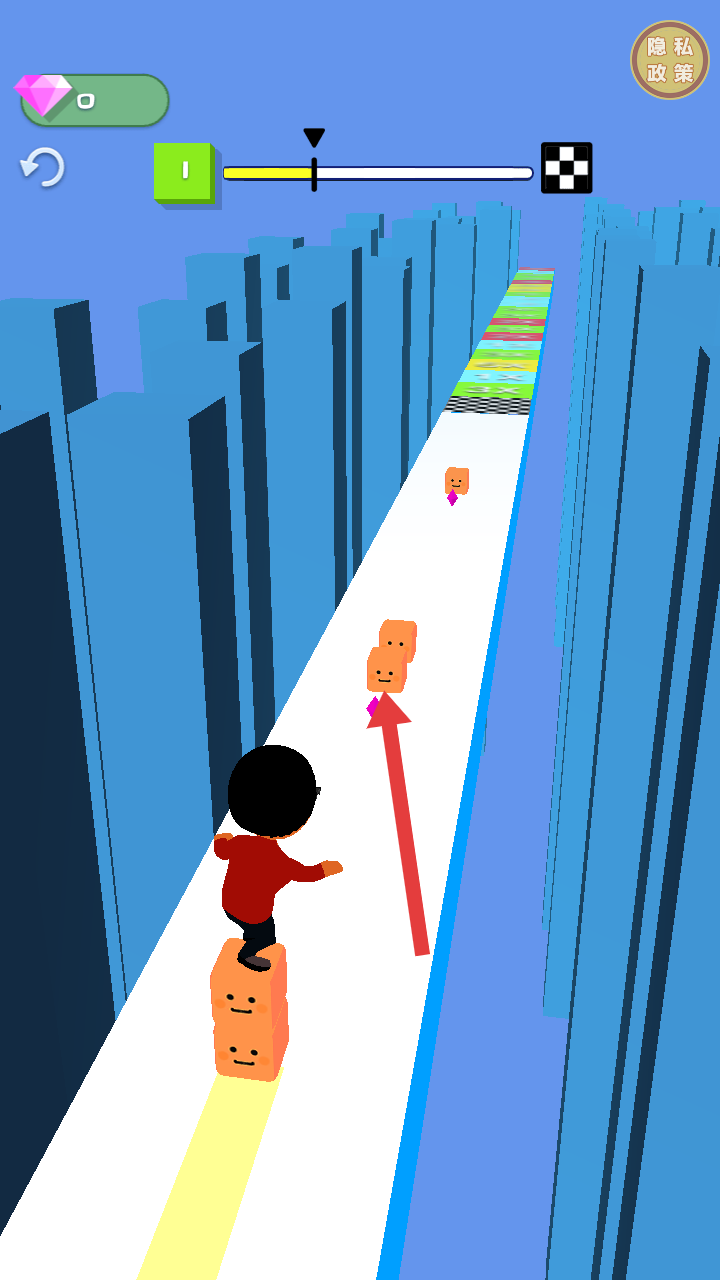 2、跑道上,角色可收集橙色方塊,收集后能幫助角色更好地應對后續的障礙與挑戰。