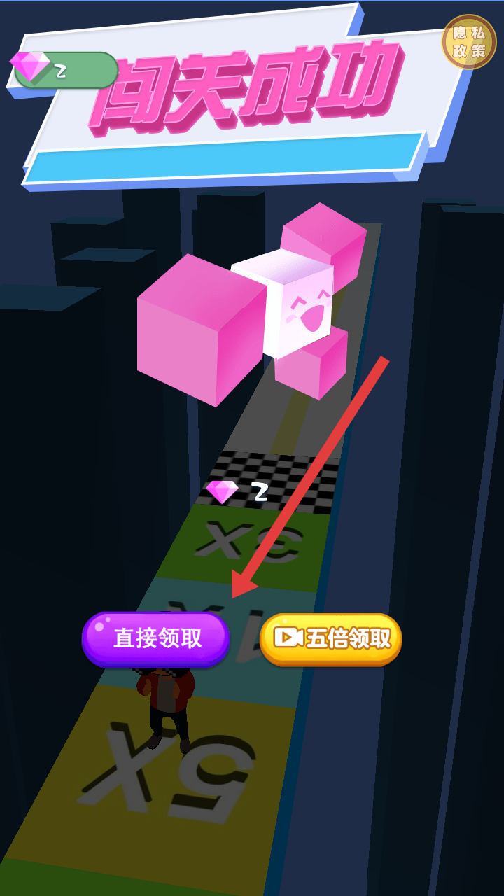 3、成功闖過關卡后,界面會顯示闖關成功,可選擇直接領取獎勵,也能看視頻獲取五倍獎勵。