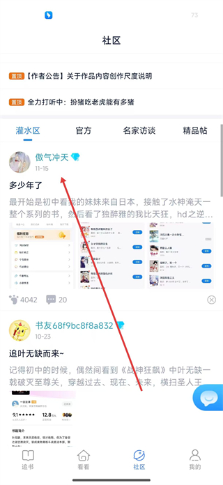 2、切換至社區頁面瀏覽灌水專區等板塊的帖子,選擇感興趣的帖子,進入帖子詳情頁面查看內容及評論。