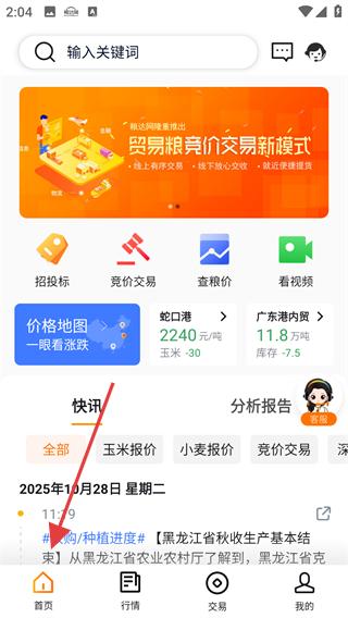 1、瀏覽貿易糧競價交易新模式的宣傳內容,查看招投標、競價交易等功能入口,了解黑龍江省秋收生產基本結束等快訊,獲取糧貿行業資訊。