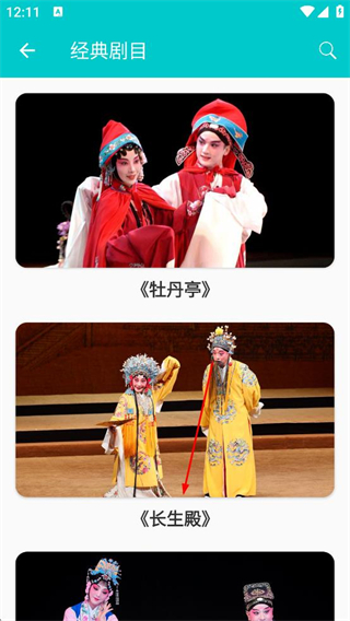 2、在經典劇目頁面選擇目標劇目比如長生殿,點擊進入該劇目的詳情頁面,查看相關的演出、賞析等信息。