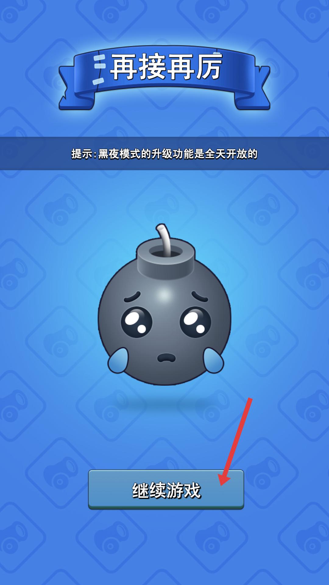 4、若游戲失敗,界面會顯示再接再厲,此時點擊繼續游戲按鈕,重新開始游戲,這次要更靈活地操控角色躲避障礙,爭取更好的成績。