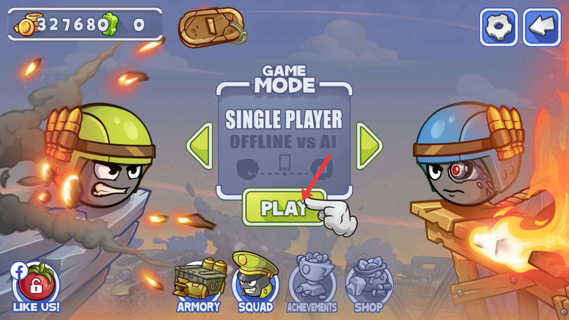 1、下載安裝世界末日大決戰2這款游戲,進入游戲,在模式選擇頁面點擊開始,進入單人離線與敵人對戰的游戲模式。