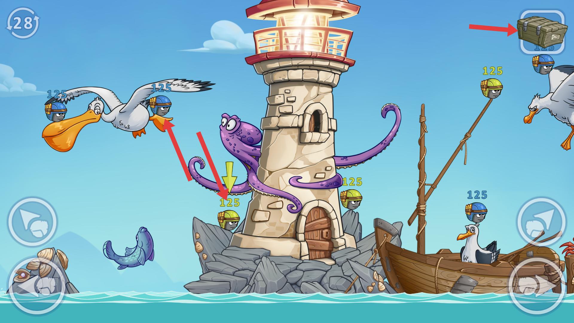 2、在游戲場景中操控角色應對燈塔旁的章魚等元素,還能收集右上角的寶箱。