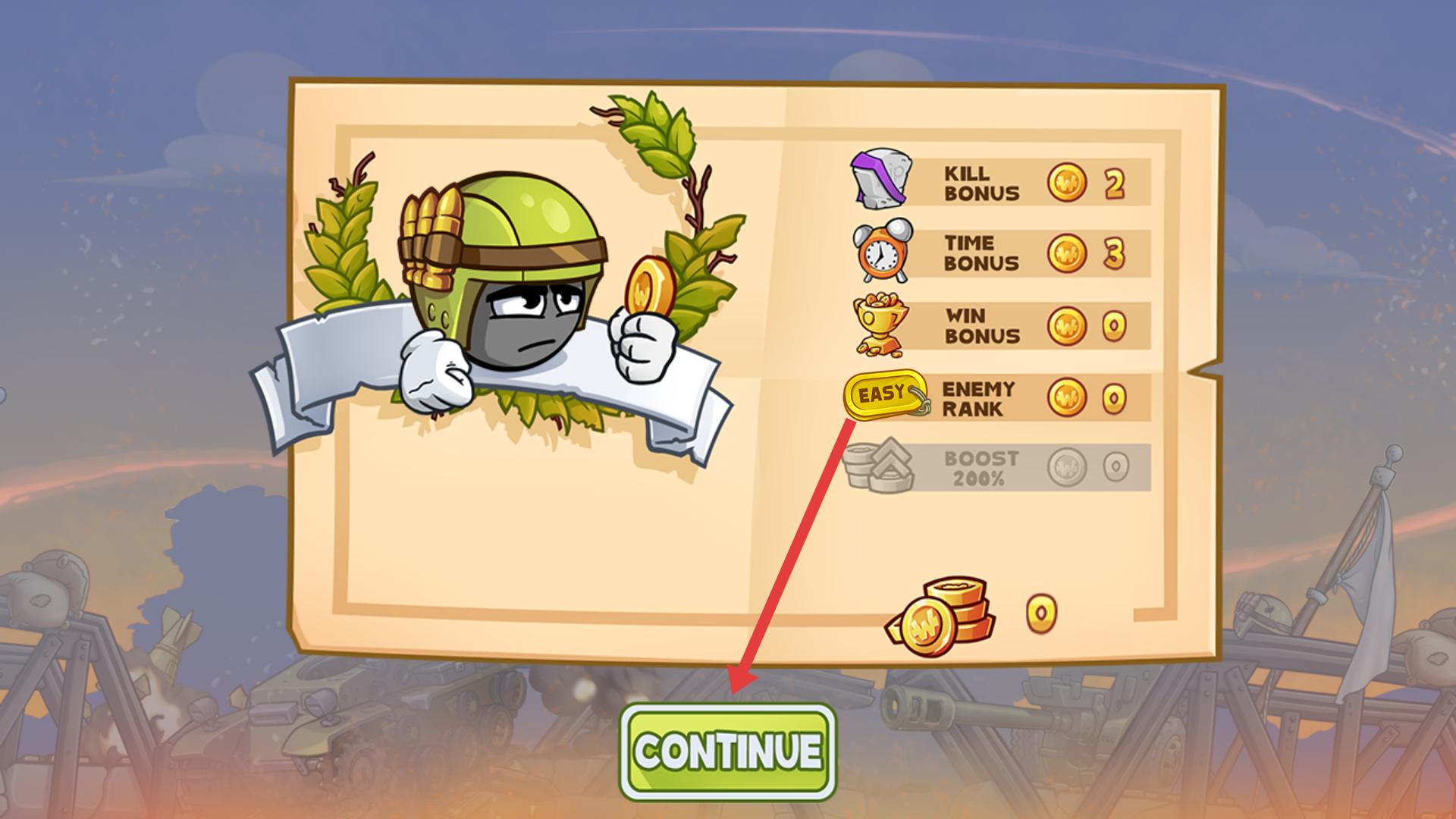 4、游戲結束后,在結算頁面查看擊殺、時間等獎勵情況,點擊繼續按鈕進入后續流程。