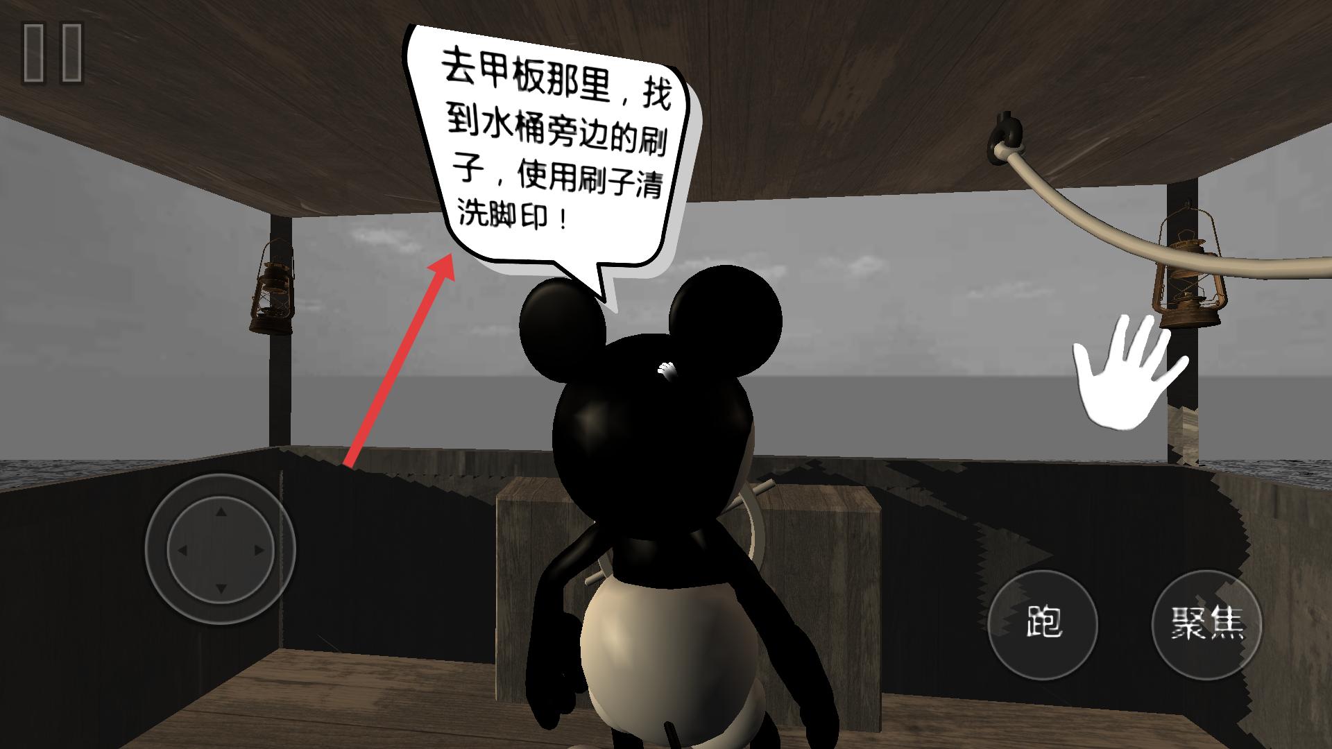 4、接取任務后,前往甲板,找水桶旁刷子,按指引操作,用刷子清洗腳印,完成任務獲取獎勵,繼續推進劇情,解鎖新挑戰。