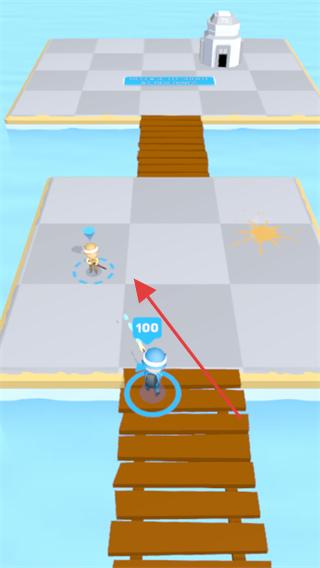 2、操控角色沿著木橋前進,途中會遇到敵方小兵,與小兵展開戰斗,擊敗小兵后繼續朝著前方帶有白色建筑的區域前進。