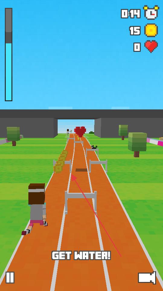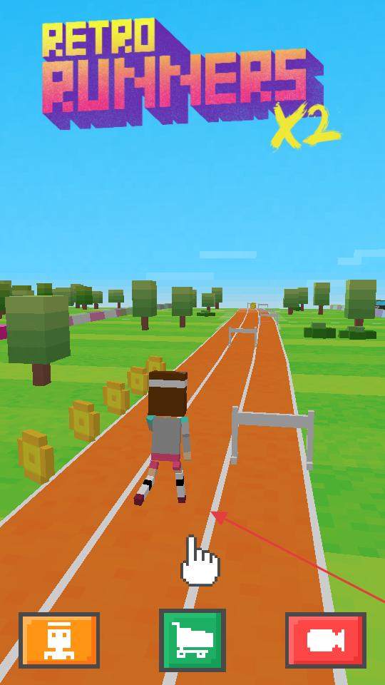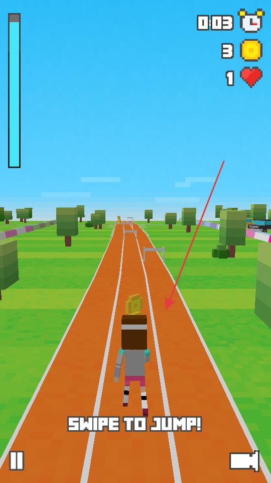 1、看到角色在跑道上準備跑步,跑道上有金幣和障礙物,開始操控角色在跑道上奔跑,收集金幣,同時注意躲避障礙物。