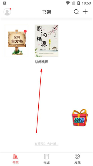 4、完成加入書架操作后切換至書架板塊,可看到已添加的悠閑桃源書籍,后續可直接在此處點擊書籍進入閱讀流程。