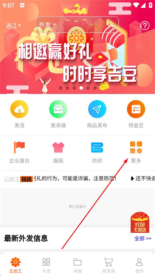 2、登錄后進入首頁瀏覽發活發承接等功能入口,點擊更多選項,可查看更豐富的功能分類,方便找到所需的服務板塊。