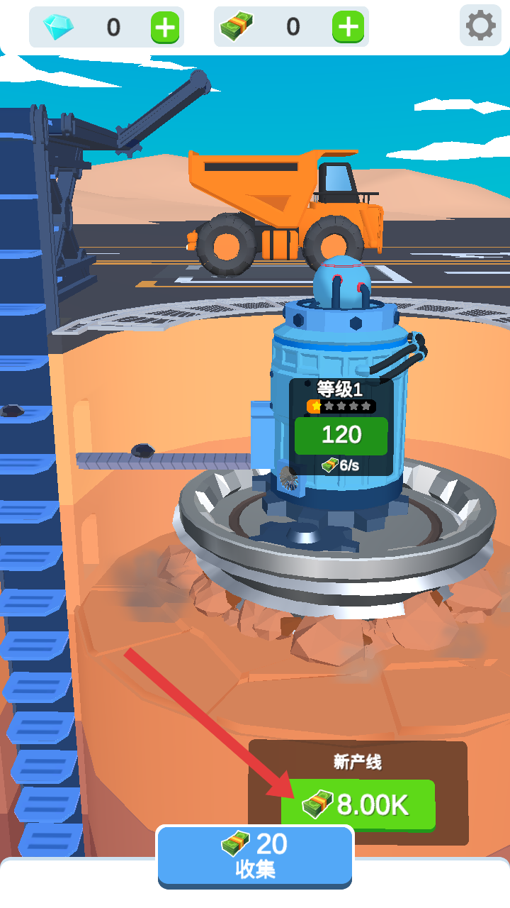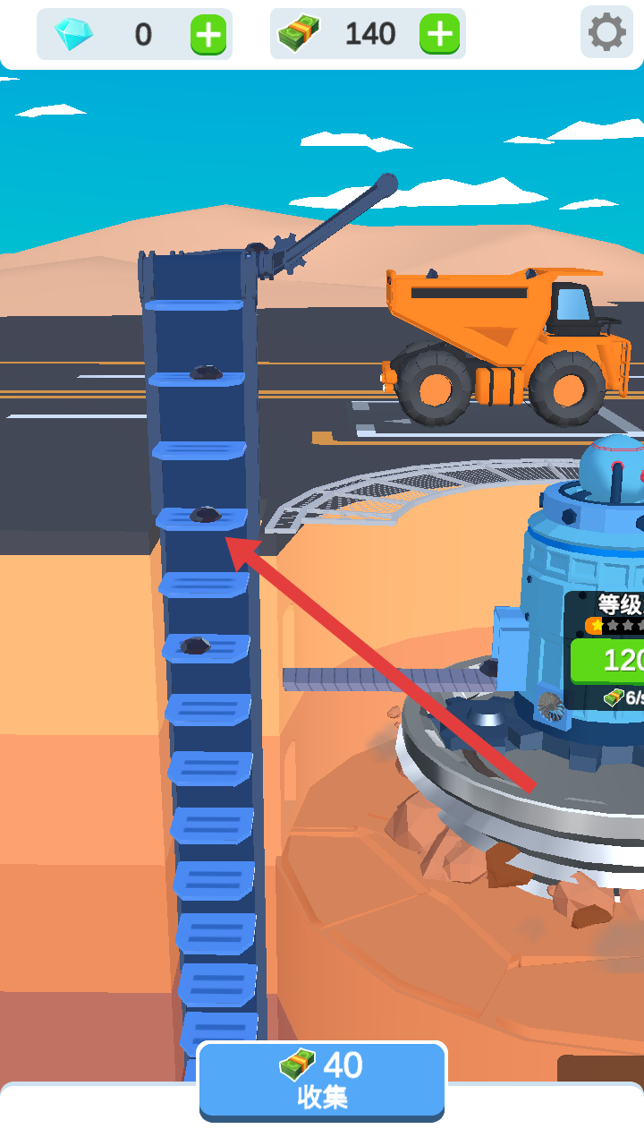 4、開采出的礦石會通過傳送帶運輸,可點擊收集獲取金錢,用于升級設備或開啟新產線。