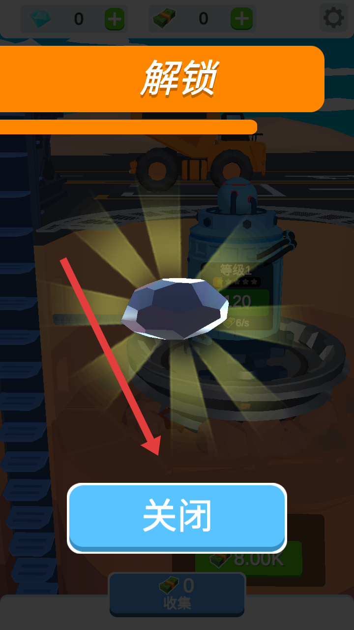 2、新產線解鎖后,會出現礦石,可點擊關閉,繼續后續采礦流程,讓開采更順暢。