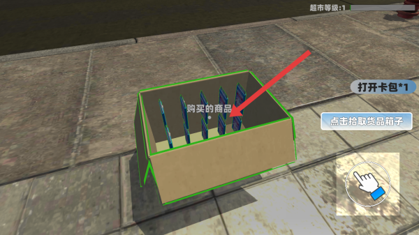 1、看到放有購買商品的箱子,點擊拾取貨品箱子,能獲取里面的商品,為后續上架做準備。