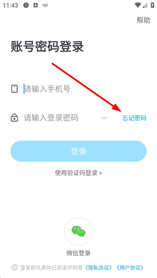 2、選擇賬號密碼登錄,需輸入手機號和登錄密碼,若忘記密碼可點擊對應選項,進入找回密碼流程,后續可重置密碼以登錄賬號。