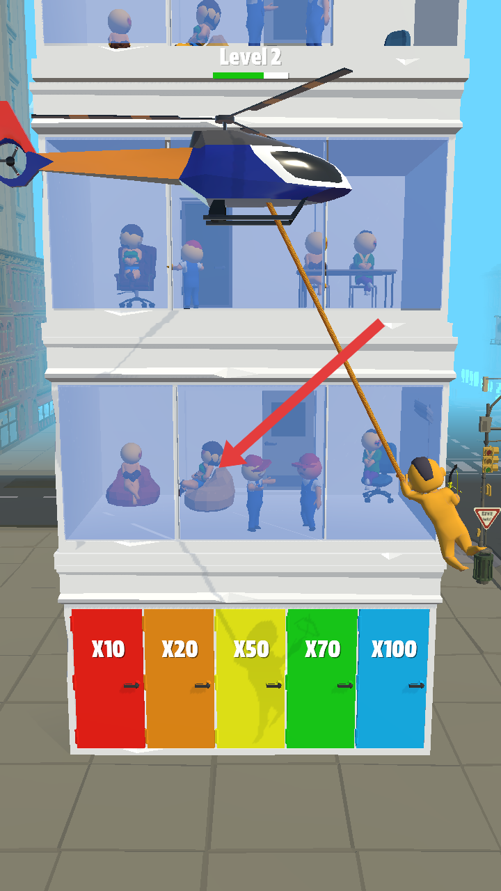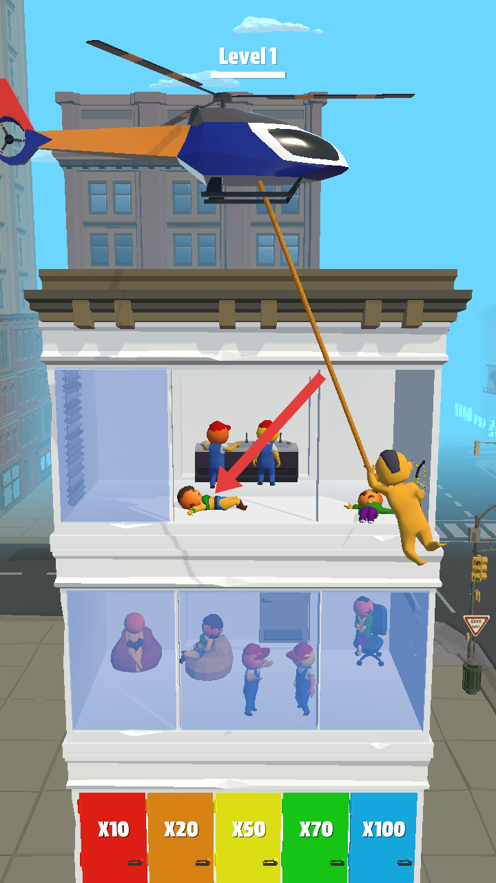 1、玩家操控角色借助直升機繩索,高樓間行動要小心擊中人質目標是救援被困人員。
