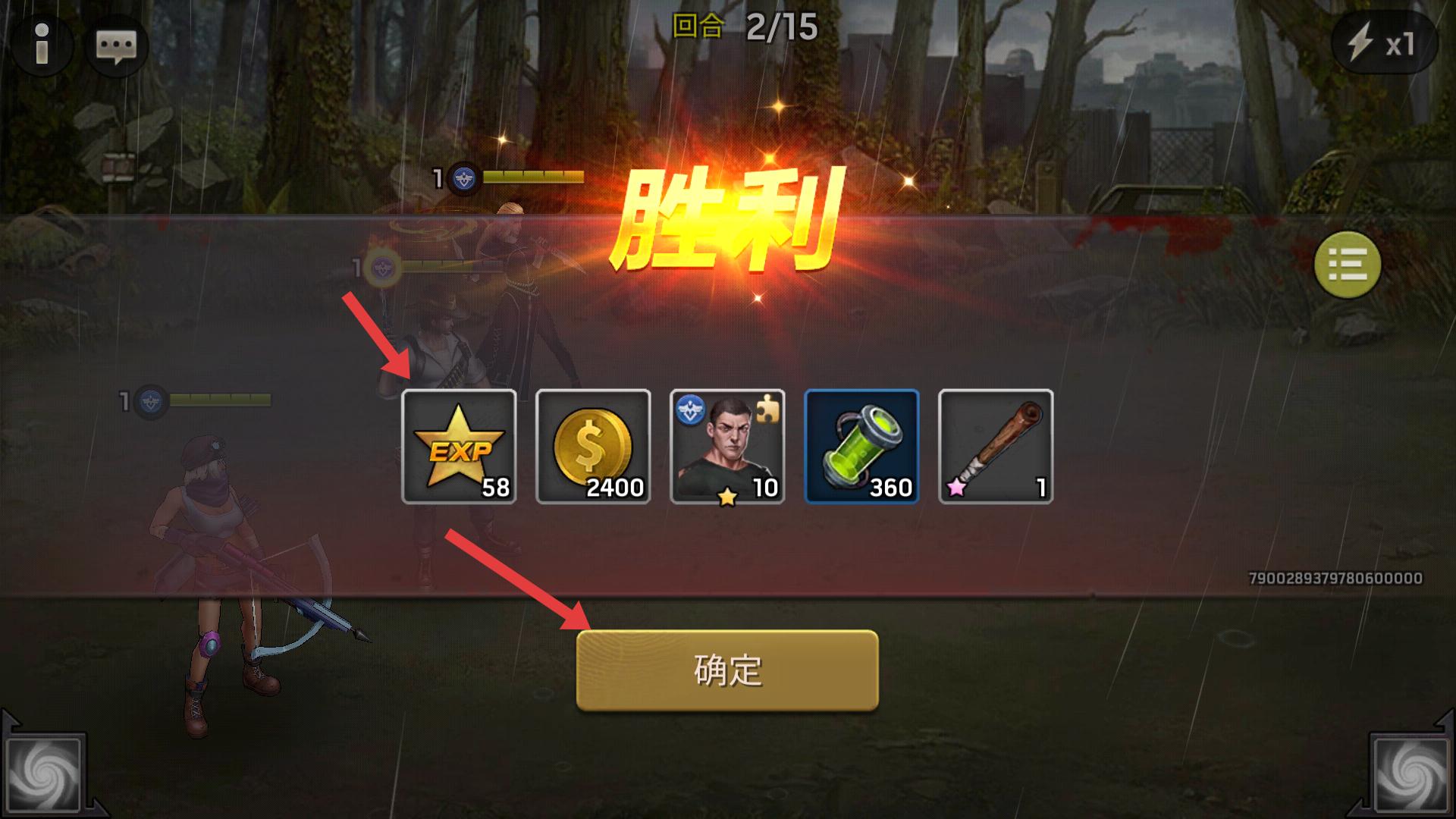 4、戰斗勝利后,可獲得經驗、金幣、道具等獎勵,點擊確定,領取獎勵,繼續后續游戲內容,也可進行對角色進行升級。