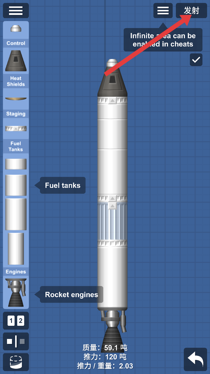 2、完成火箭各部件組裝后,點擊發射按鈕,讓組裝好的火箭進入發射流程,準備升空。
