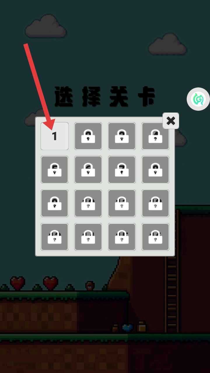 2、關卡選擇界面,選擇可進入的第1關開始本關的冒險,獲得勝利就可以解鎖下一關。