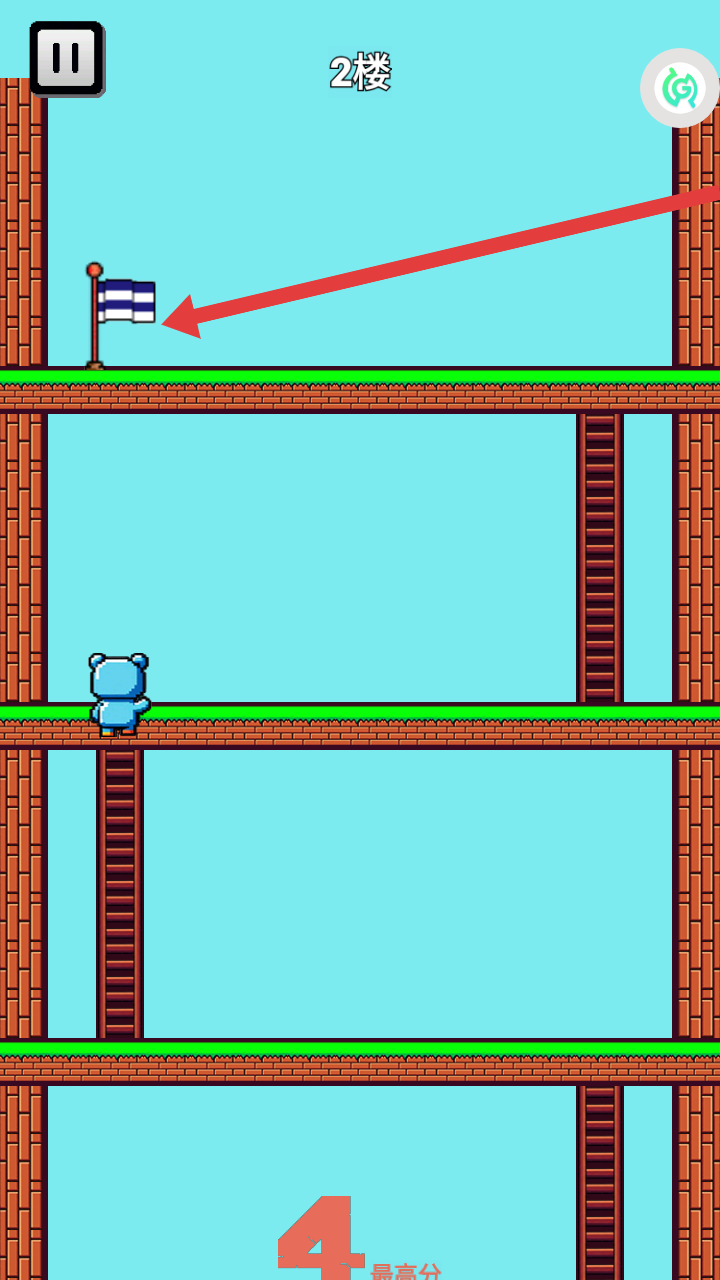 3、操控藍色小熊角色多層建筑場景中移動,目標是到達帶有旗幟的位置,過程中可借助樓梯等結構上下移動。