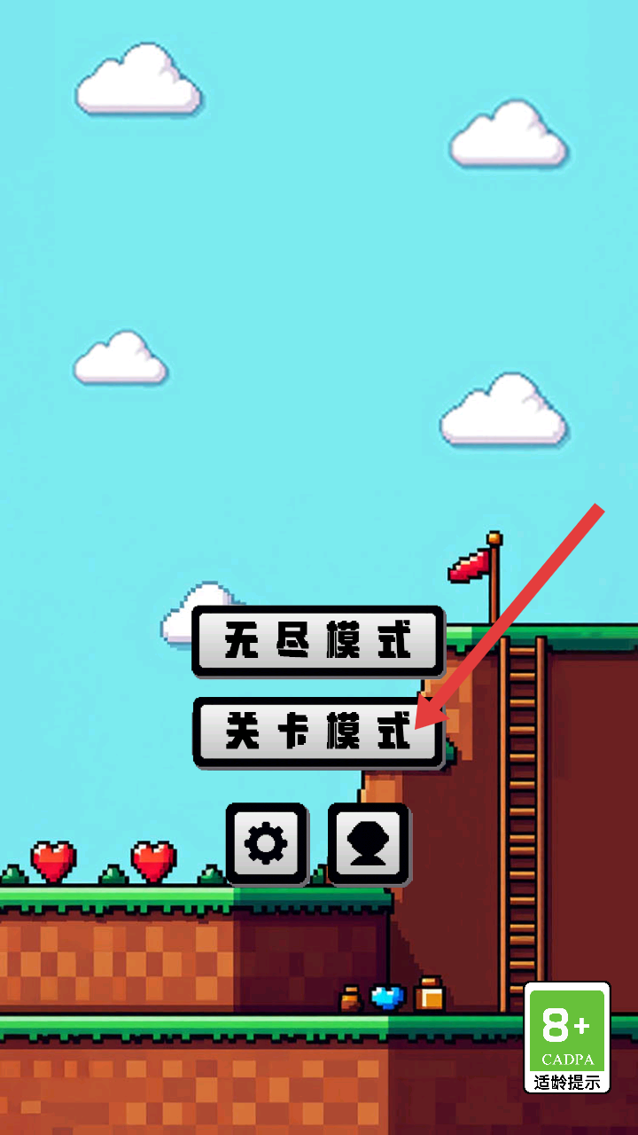 1、進入游戲后游戲有兩種模式可以選擇,主界面選擇關卡模式,開啟關卡挑戰之旅。