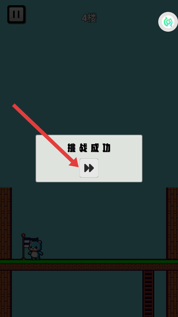 4、成功到達目標位置后,會顯示挑戰成功,點擊箭頭按鈕,可繼續挑戰后續關卡。