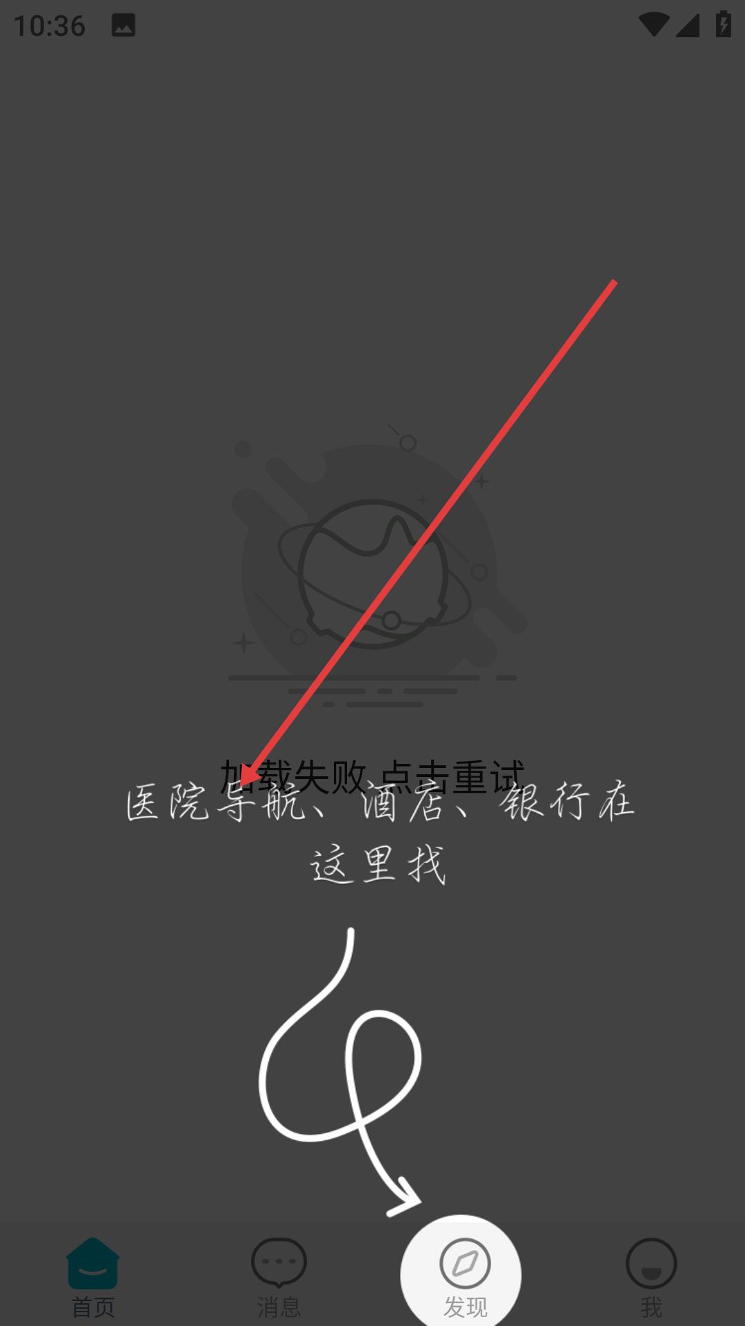 3、然而醫院導航,酒店,銀行這些功能,用戶可以點擊發現處尋找,但還需要用戶先進行賬戶的登錄。