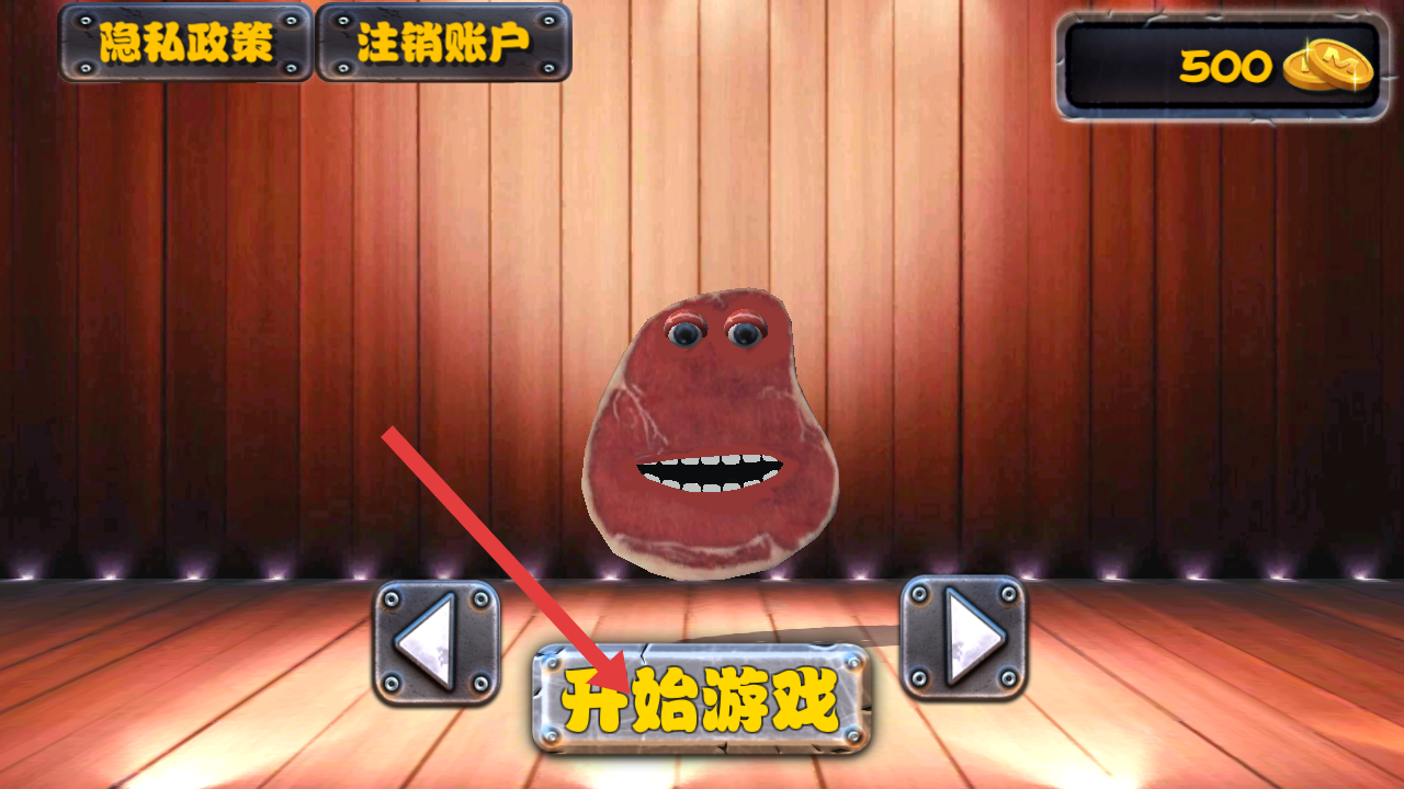 1、進入游戲界面,能看到隱私政策、注銷賬戶按鈕,還有顯示金幣數量的區域,點擊開始游戲即可開啟挑戰。