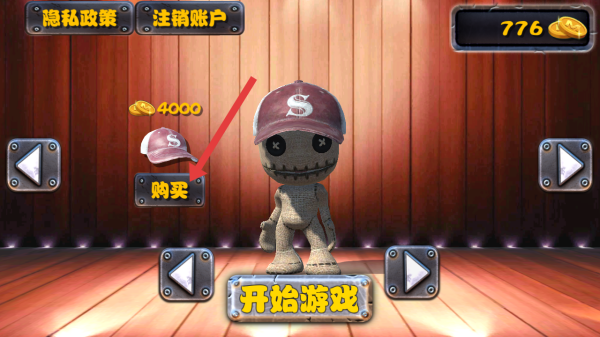 4、游戲還有角色裝扮系統,可使用金幣購買帽子等裝扮,為角色換上新外觀,之后點擊開始游戲繼續挑戰。