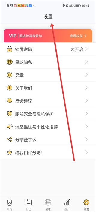2、點擊設置板塊可查看VIP權益、鎖屏密碼、星球隱私等設置選項,還能進行反饋建議、賬號安全與隱私保護等操作,管理軟件使用設置。