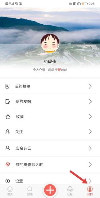 3、點擊我的頁面,展示用戶信息,集成投稿、發帖、收藏等功能,還支持實名認證與攝影師入駐。