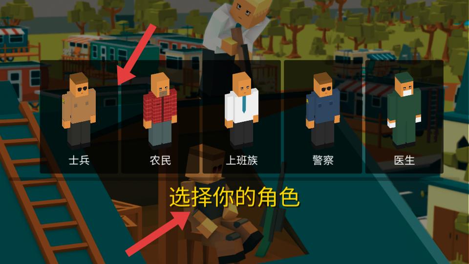 1、進入游戲先看到有士兵,農民等角色的選擇界面,挑選喜歡的角色后,進入帶有開始游戲按鈕的界面。