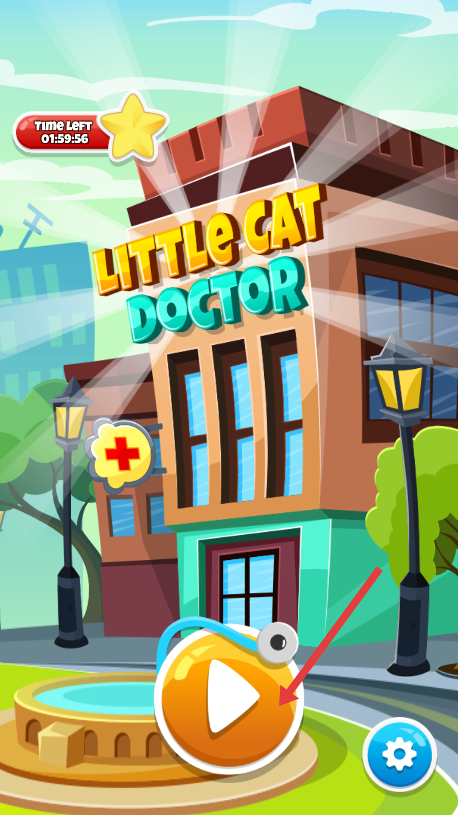 1、進入游戲,點擊橙色播放按鈕,開啟貓咪診療之旅,準備為貓咪進行各項檢查與治療。