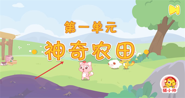3、神奇農田課程頁是該單元的學習入口,以卡通動畫場景呈現單元主題,搭配角色形象,營造趣味識字的學習氛圍。