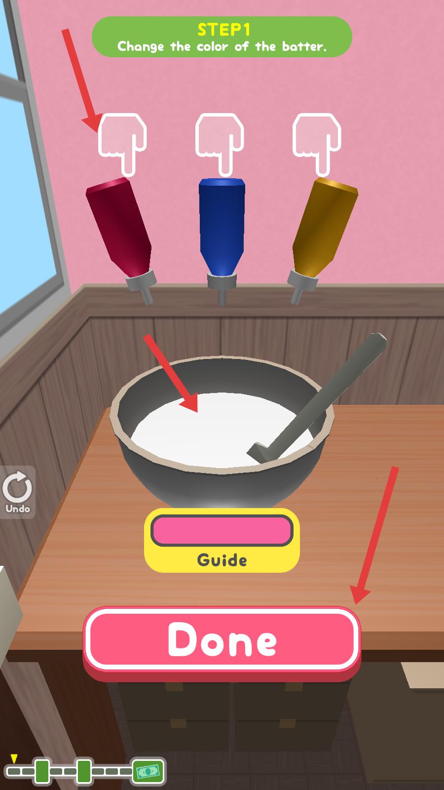 2、在步驟一,按照改變面糊顏色的要求,選擇合適的色素加入面糊中,調整面糊顏色,完成后點擊完成按鈕。